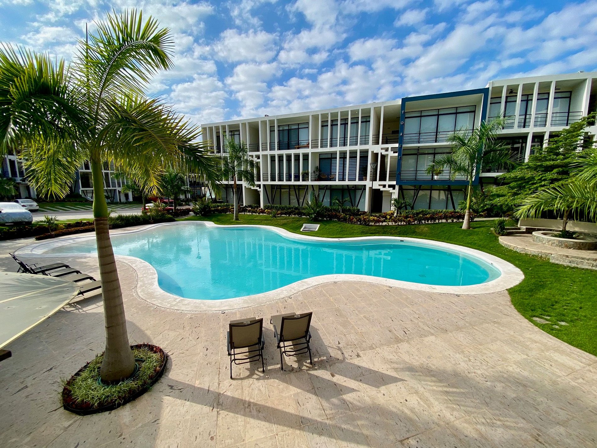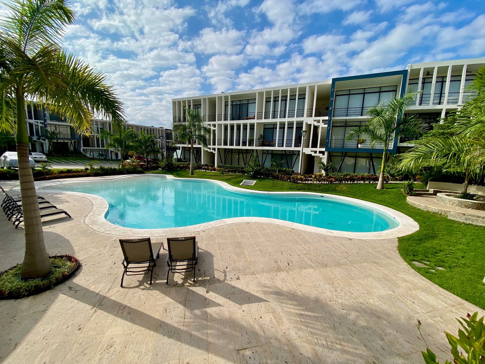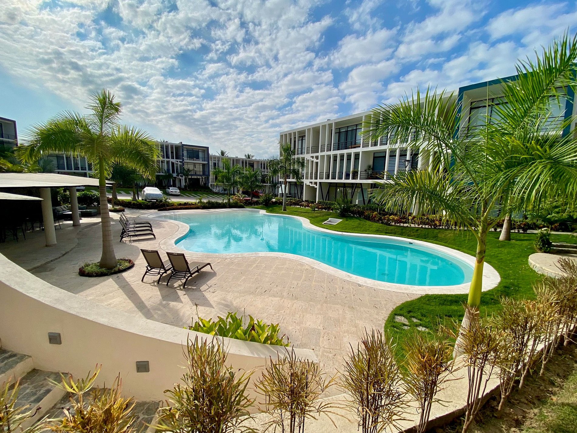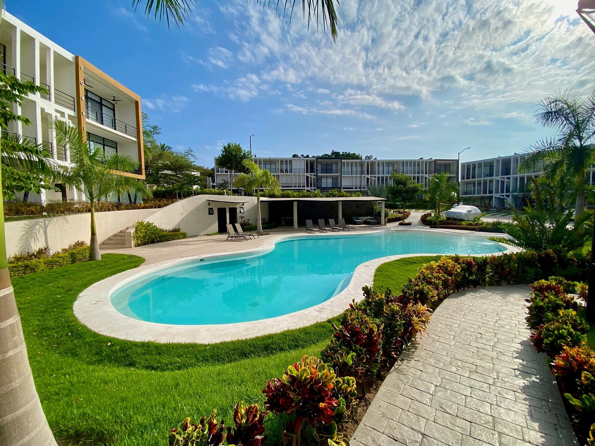 Step outside to your private patio or stroll into the lush common areas. The resort-style pool is perfect for cooling off, with plenty of lounge chairs and shaded spots. Enjoy shared BBQ facilities and access to a well-equipped gym.