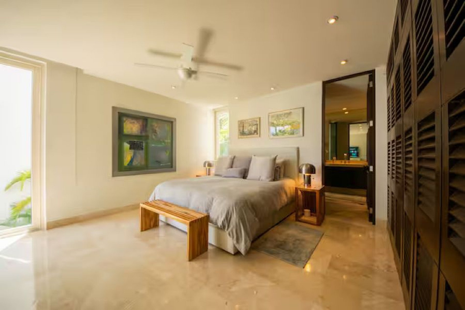 Each of the three bedrooms includes a king-size bed, air conditioning, and a private bathroom, providing guests with privacy and comfort. Additional amenities include a washer and dryer, high-speed WiFi, and elevator access for convenience.