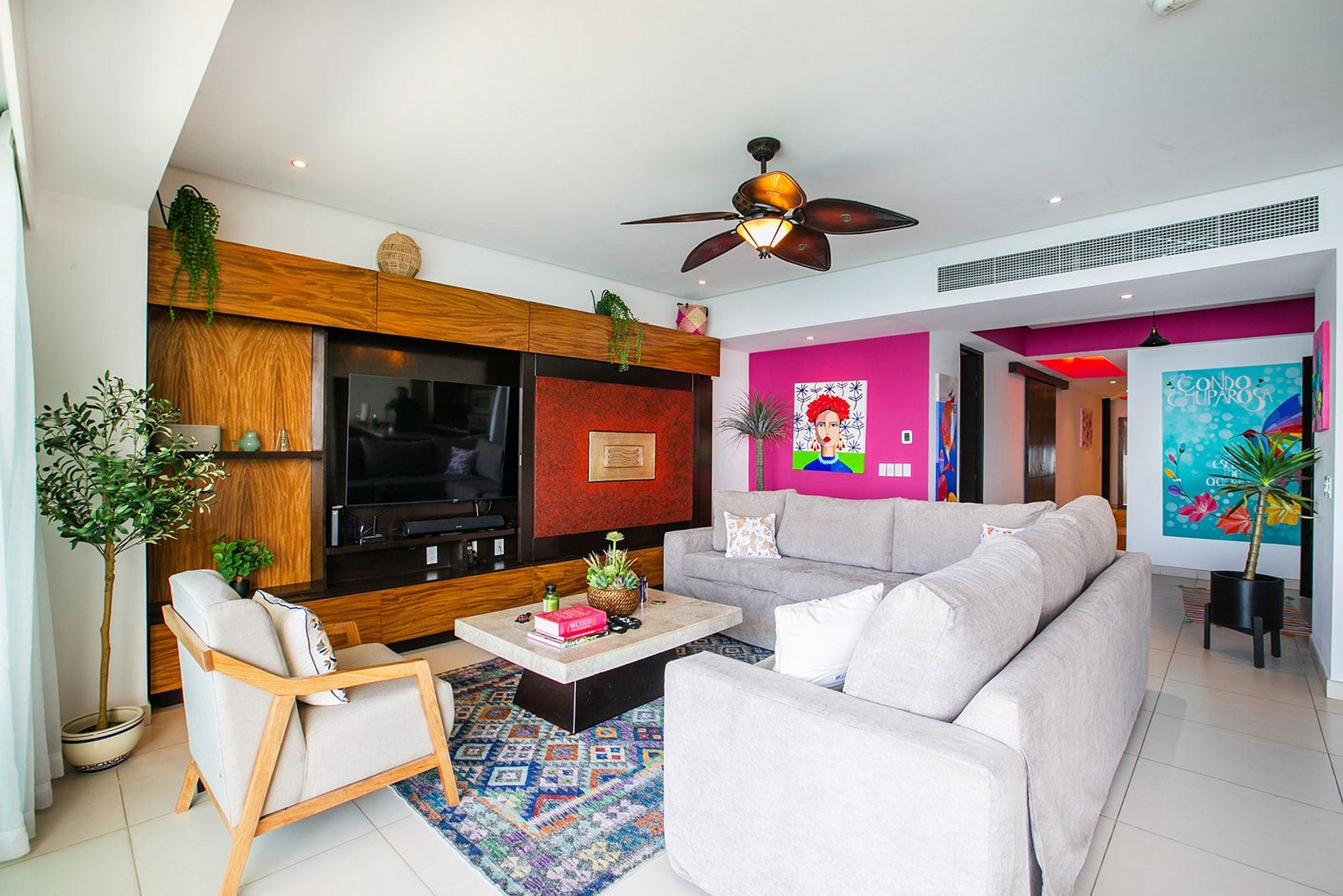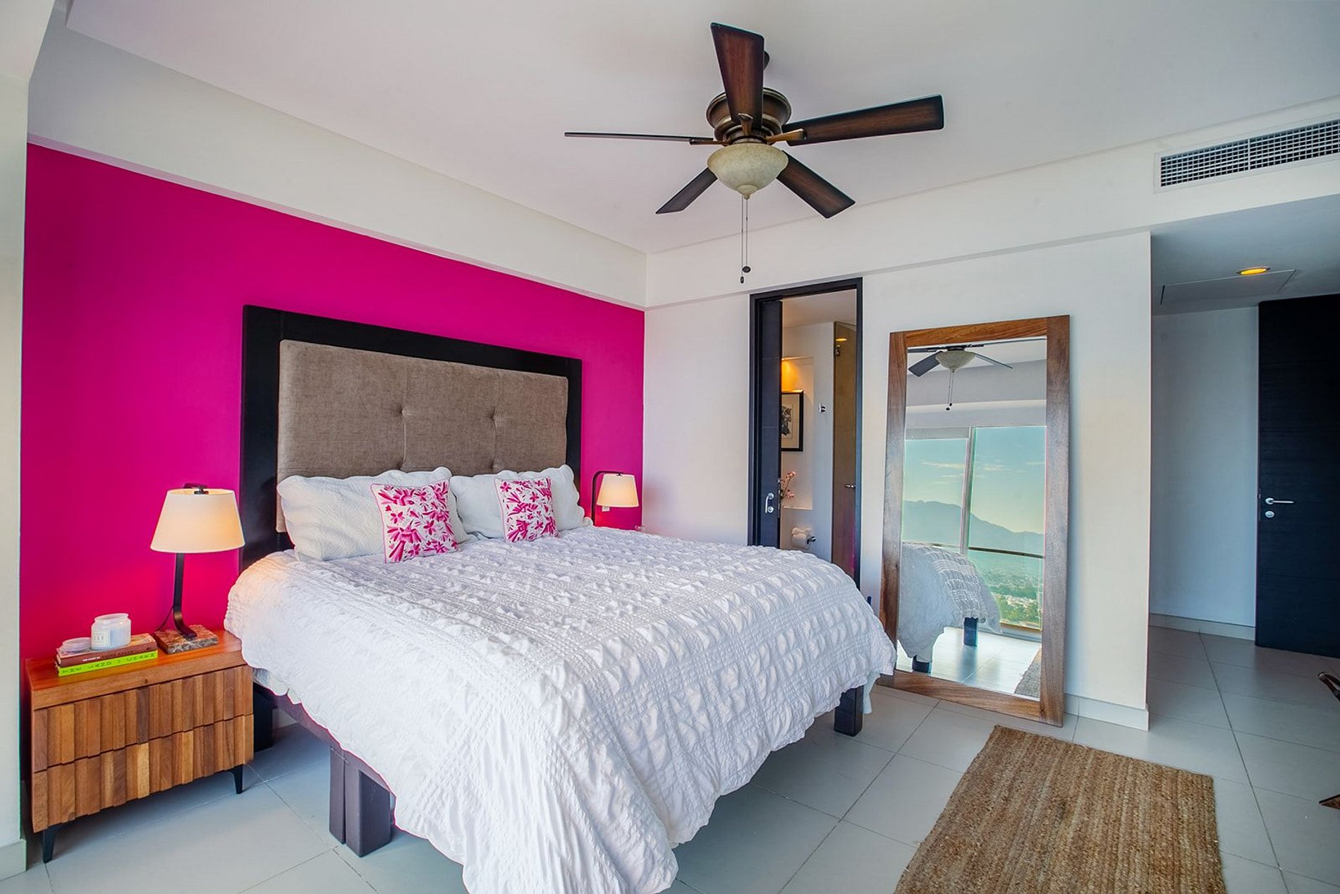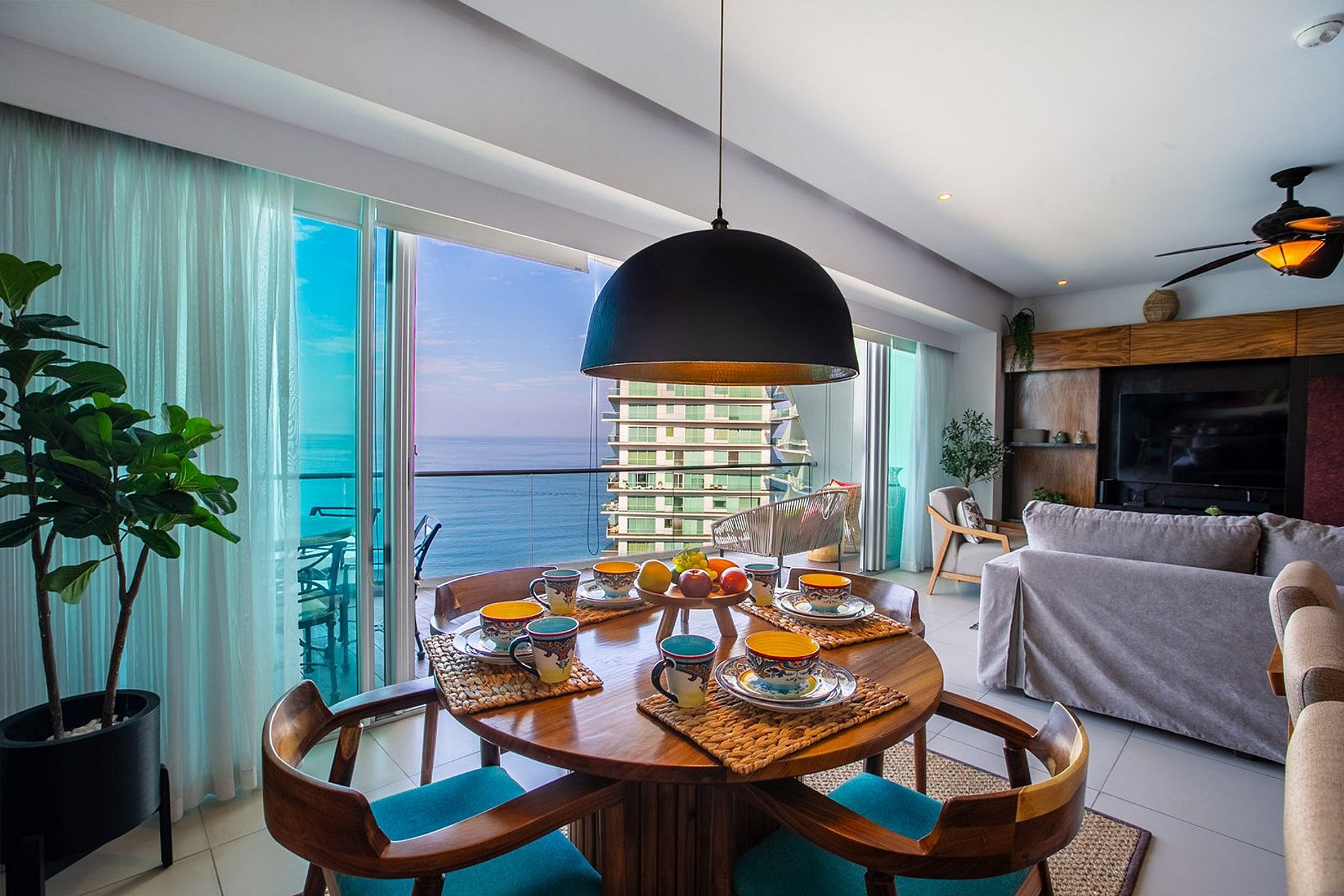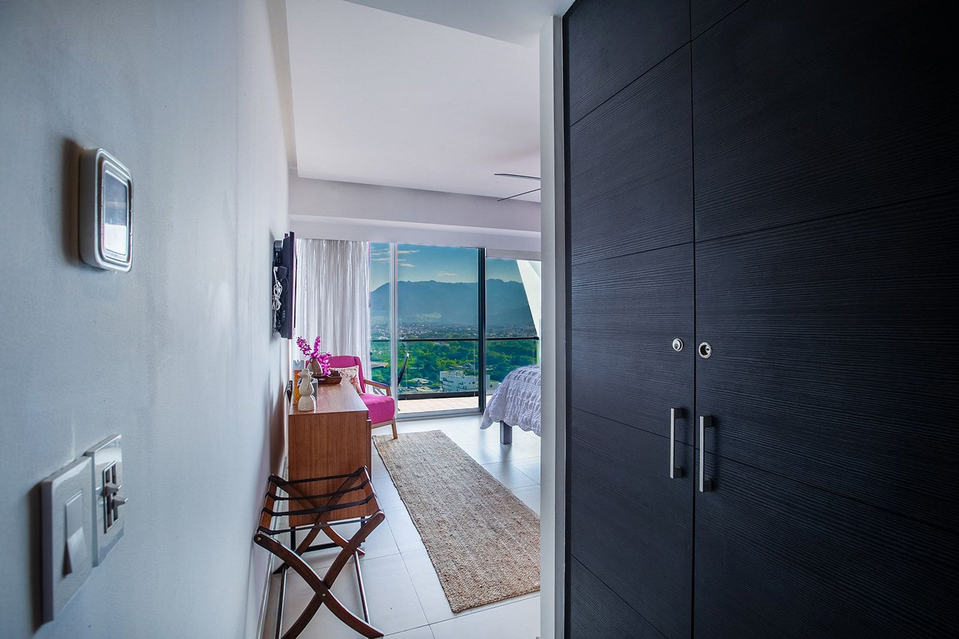 Descubre un espacio verdaderamente especial con mucha calidez y personalidad, cuidadosamente remodelado por su nuevo dueño, prestando atención a cada detalle. Desde aquí, disfrutarás de impresionantes vistas del Océano Pacífico y la bahía de Puerto Vallarta, junto con un balcón que ofrece una mesa de comedor y camastros acolchonados con panoramas espectaculares de la ciudad y las majestuosas montañas de fondo. La sala cuenta con un gran sofá cómodo frente a una TV con Roku, Amazon Prime, Disney+ y Netflix, ideal para relajarte entre actividades.