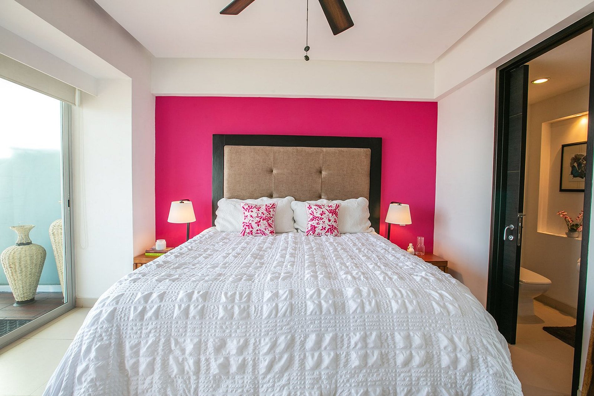 Cuando sea hora de descansar por la noche, hay dos cómodas habitaciones, cada una con una cama king y acceso directo al balcón. Hay dos baños y medio, uno de ellos en la habitación principal. El sofá se puede convertir en una cama doble si necesitas espacio extra para dormir. Las camas están hechas con ropa de cama de lujo y almohadas suaves, además de cortinas opacas para asegurar una buena noche de sueño.